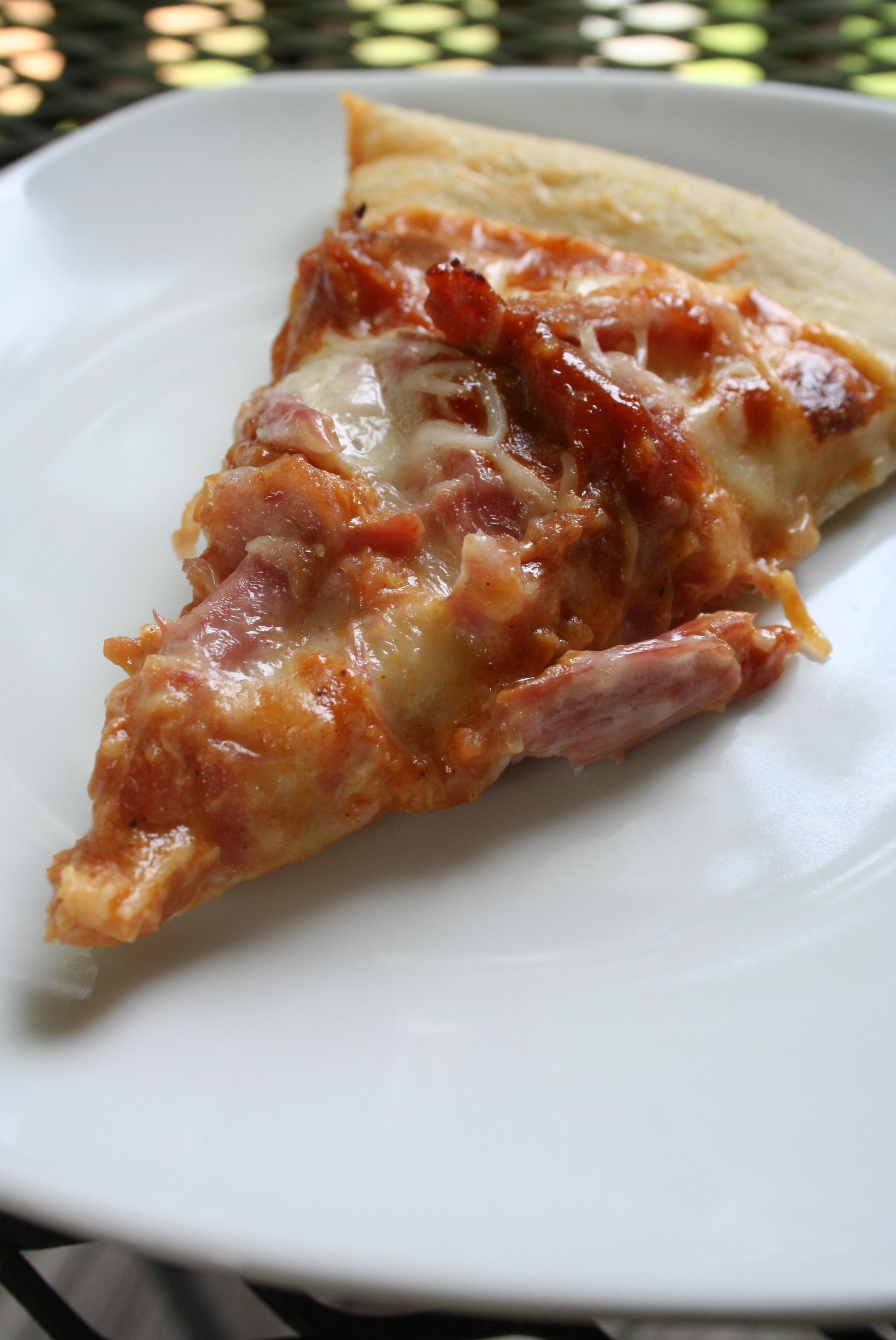 We baked the pizza for about 12 minutes but our oven loves to burn things so you may need to leave your pizza in the oven longer. We let the crust get a little crispy and made sure the cheese was melted and some parts of the pizza had browned.