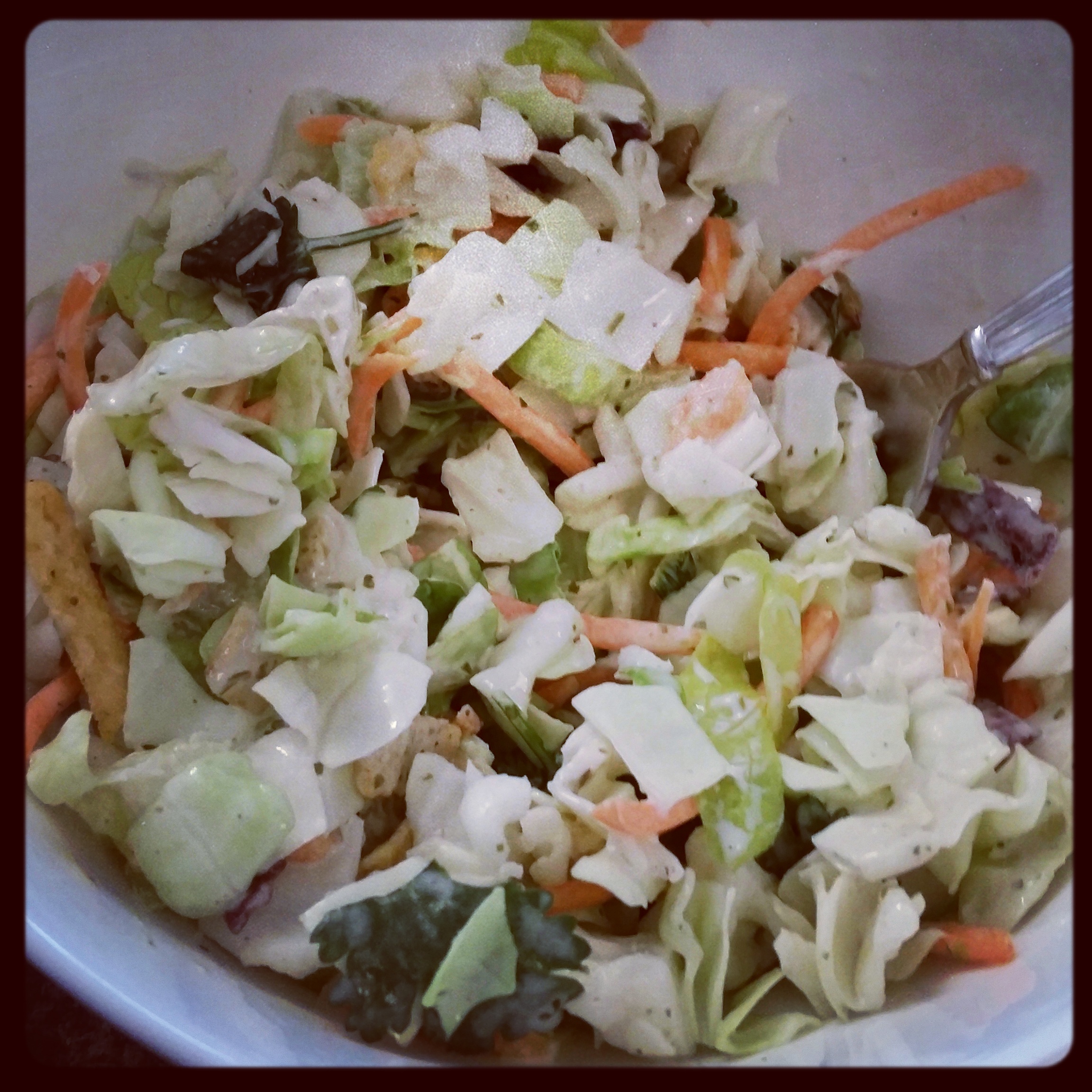 I got this recipe from one of the professors in my department. The soup is vegan (depending on what your salsa and vegetable broth have in it). The salad is from Target and is really good but the dressing (and maybe the tortilla strips) contains eggs and milk.