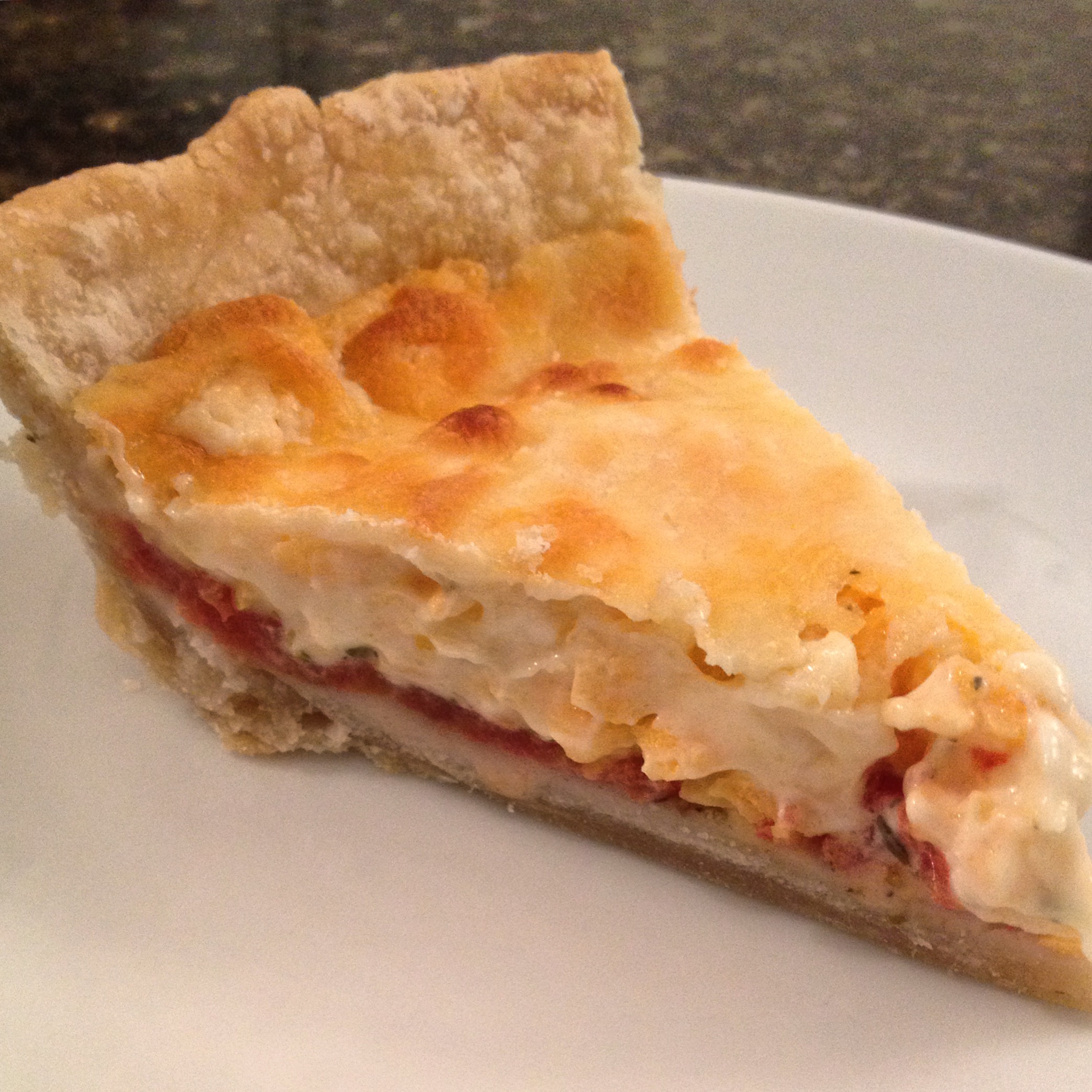*You need to make sure your tomatoes are not too juicy or your crust will get soggy. I allowed my tomatoes to drain the entire time I made, baked, and refrigerated my crust (about an hour).