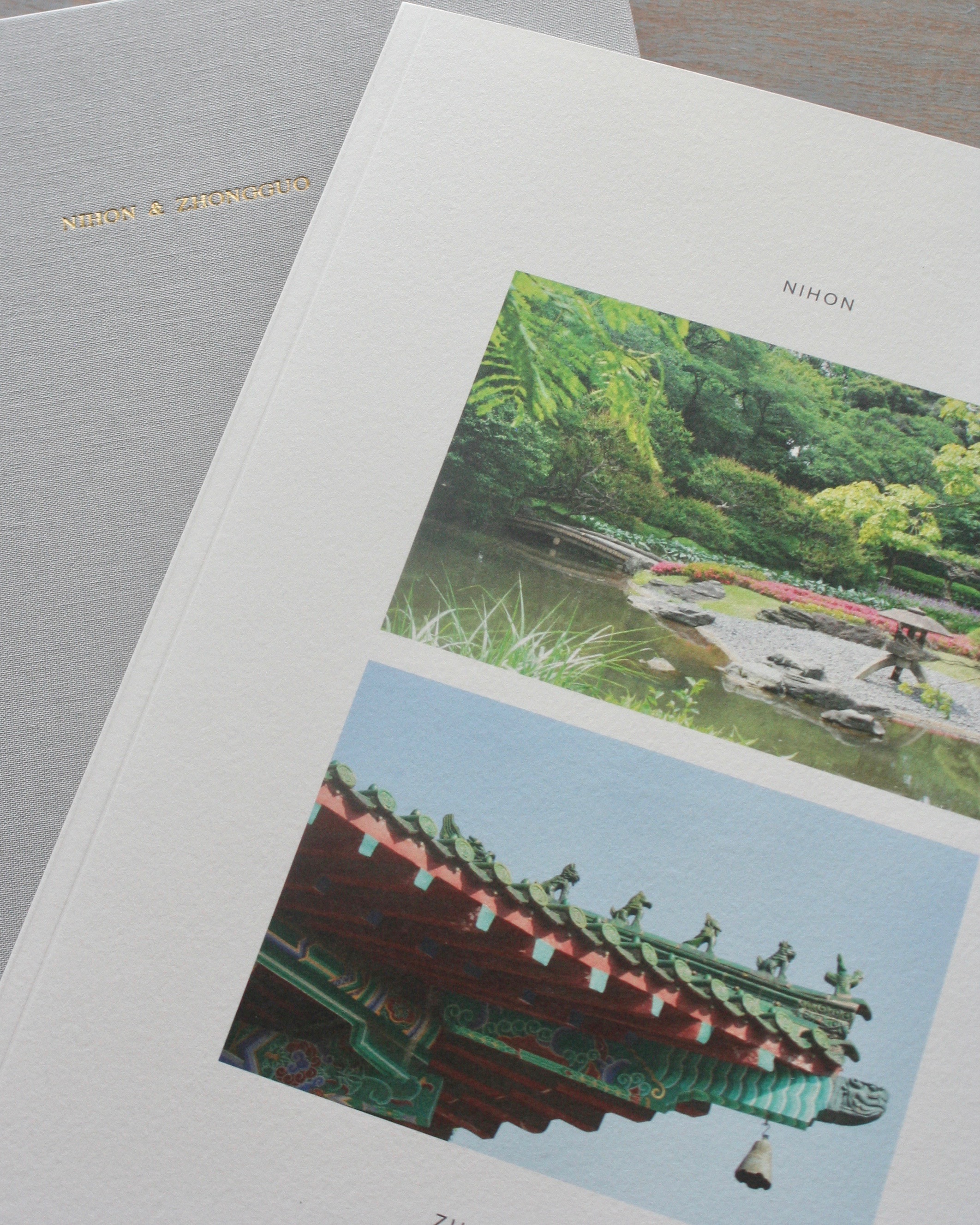 Seven years later, instead of making myself a wedding album, I made albums of our trip to Japan and China. I chose the eggshell finish paper, the “smoke” colored cover, and gold stamping. The spine and cover have a few predetermined layouts you can chose from and I chose to place the title “Nihon [Japan] & Zhongguo [China],” in the top center with MMXVII [2017] on the bottom portion of the spine. The layflat photo book is filled with the more professional looking photos (landscapes, monuments, temples, buildings). For this book, I did not use a lot of their predetermined layouts, rather I created my own.