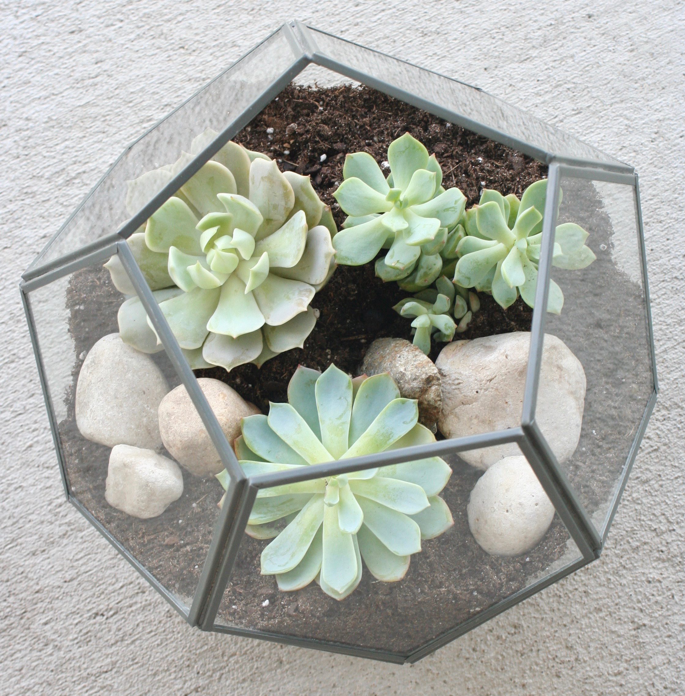 Some people also are totally against using pots and containers without drainage holes. None of these containers have drainage so I really hope that the soil and gem combination I used will prevent my succulents from drowning.