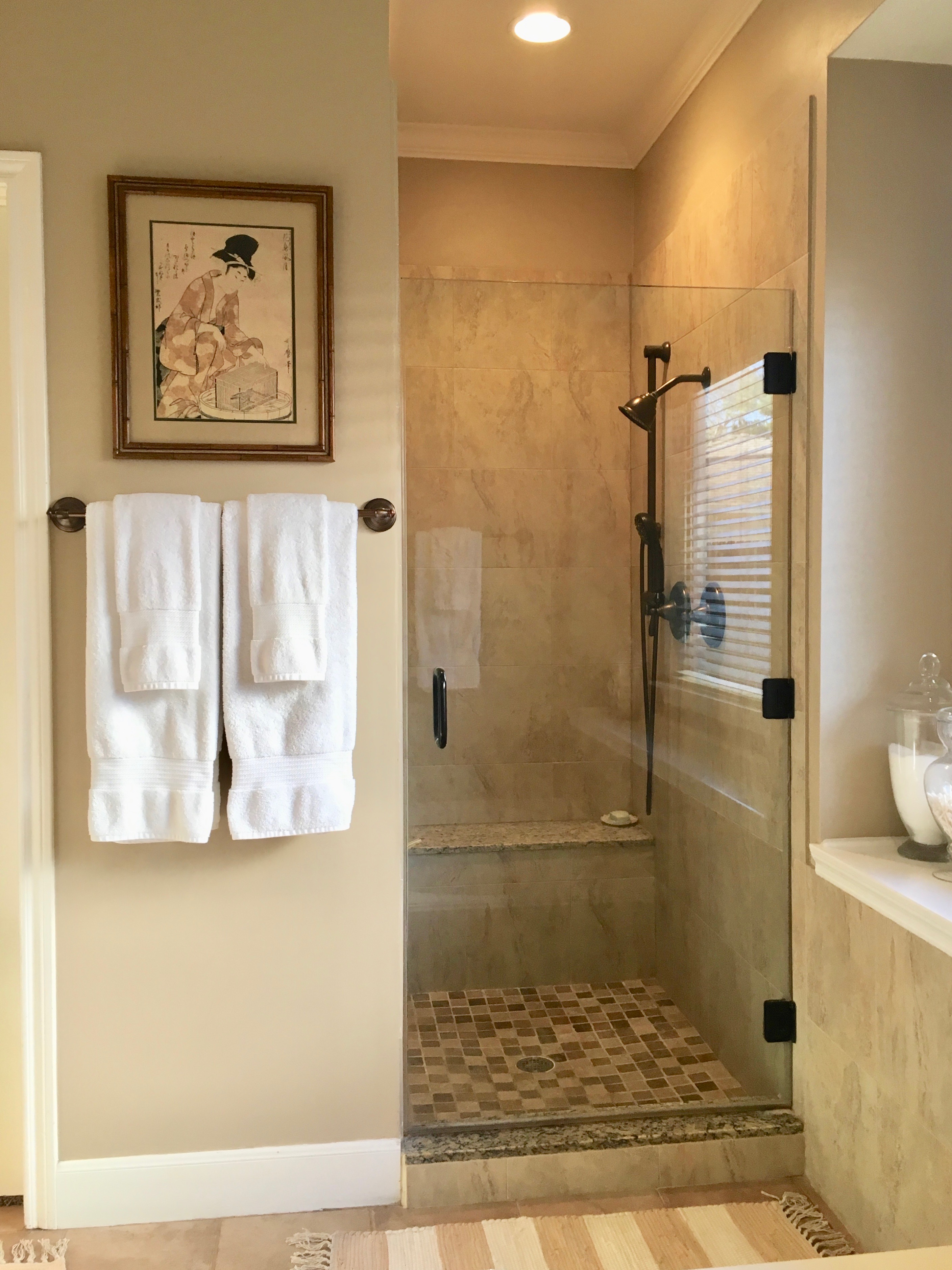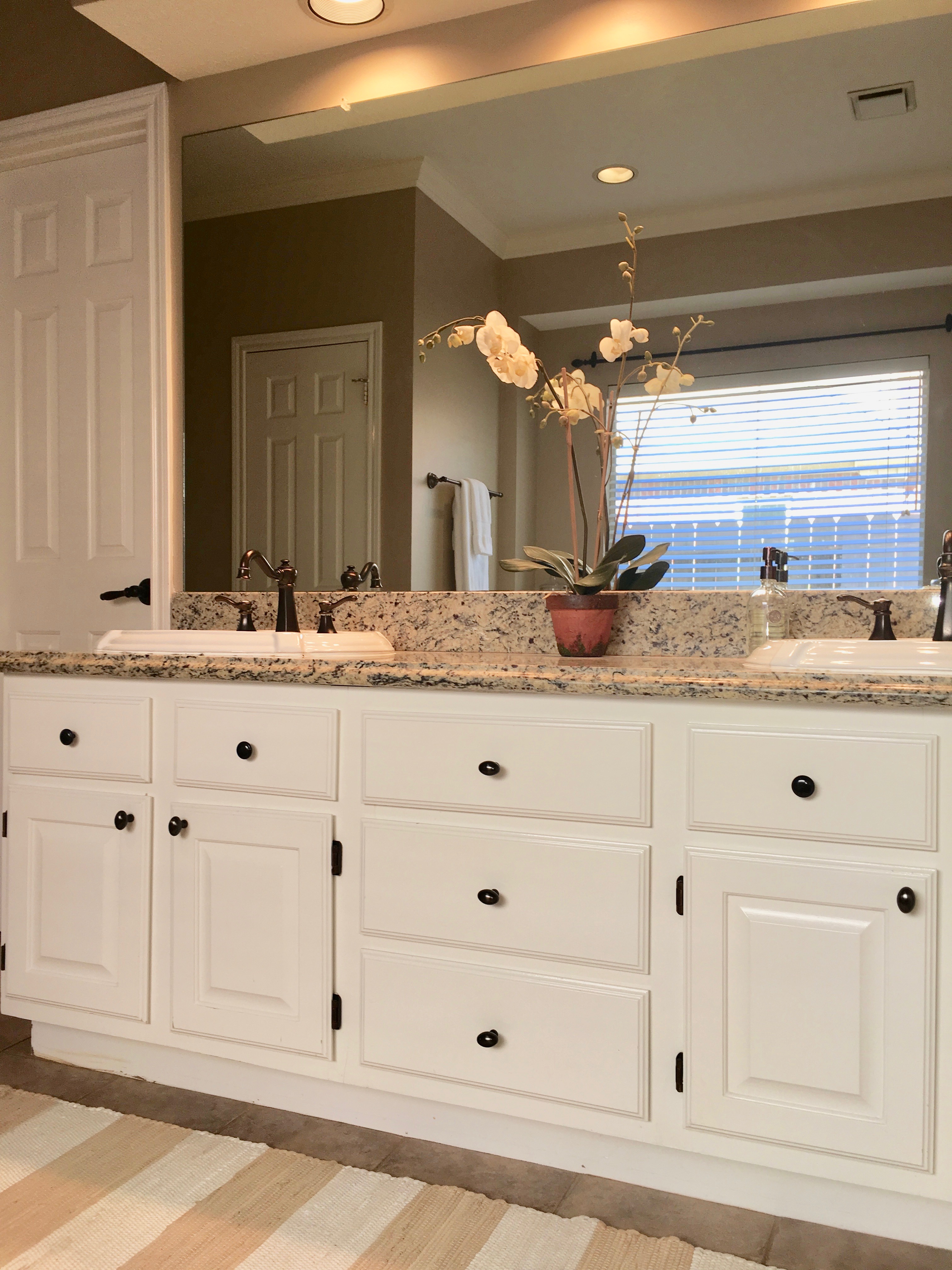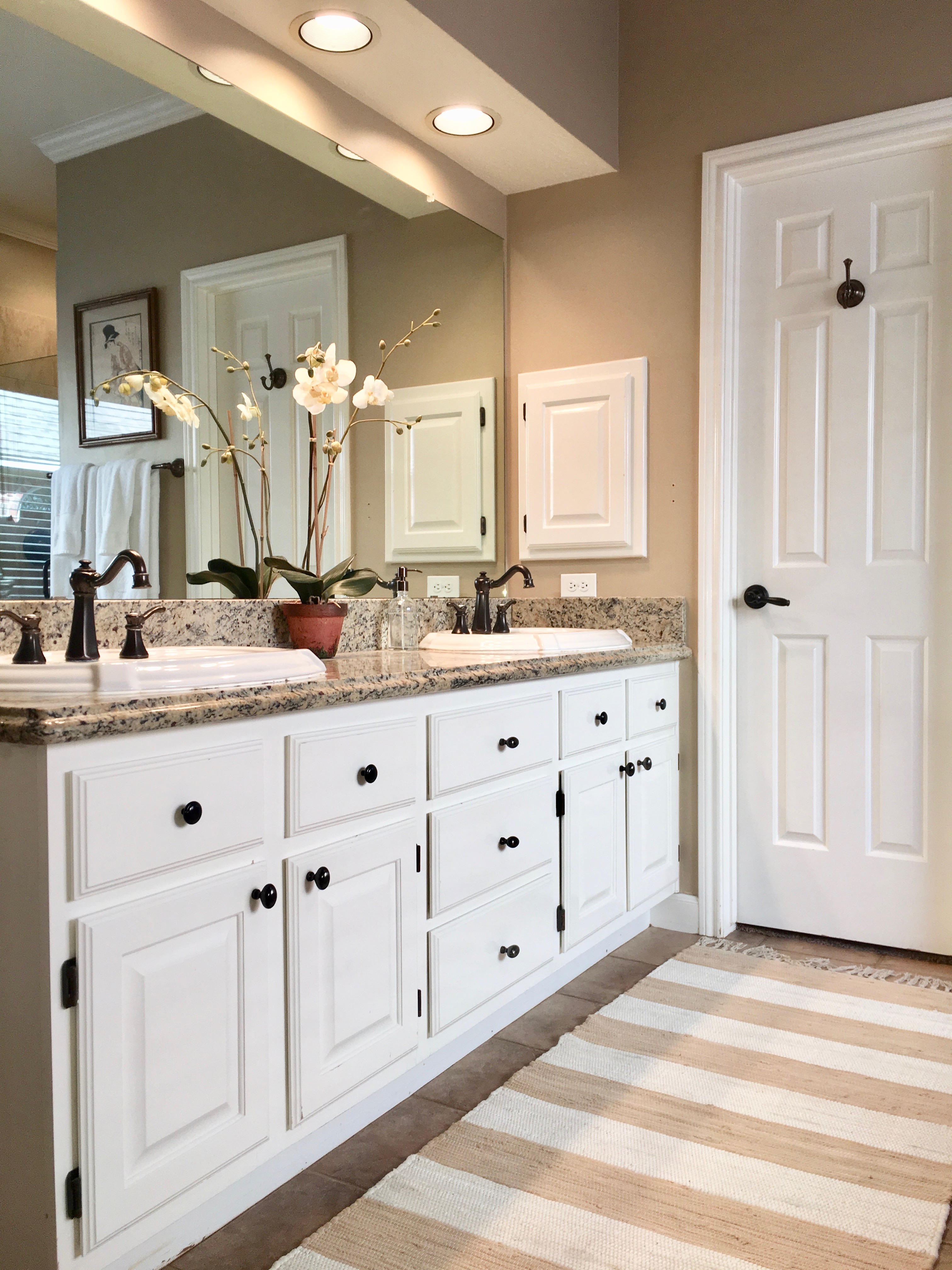 The rugs are from Rugs.Com. The towels and apothecary jars are from TJMaxx and Homegoods.