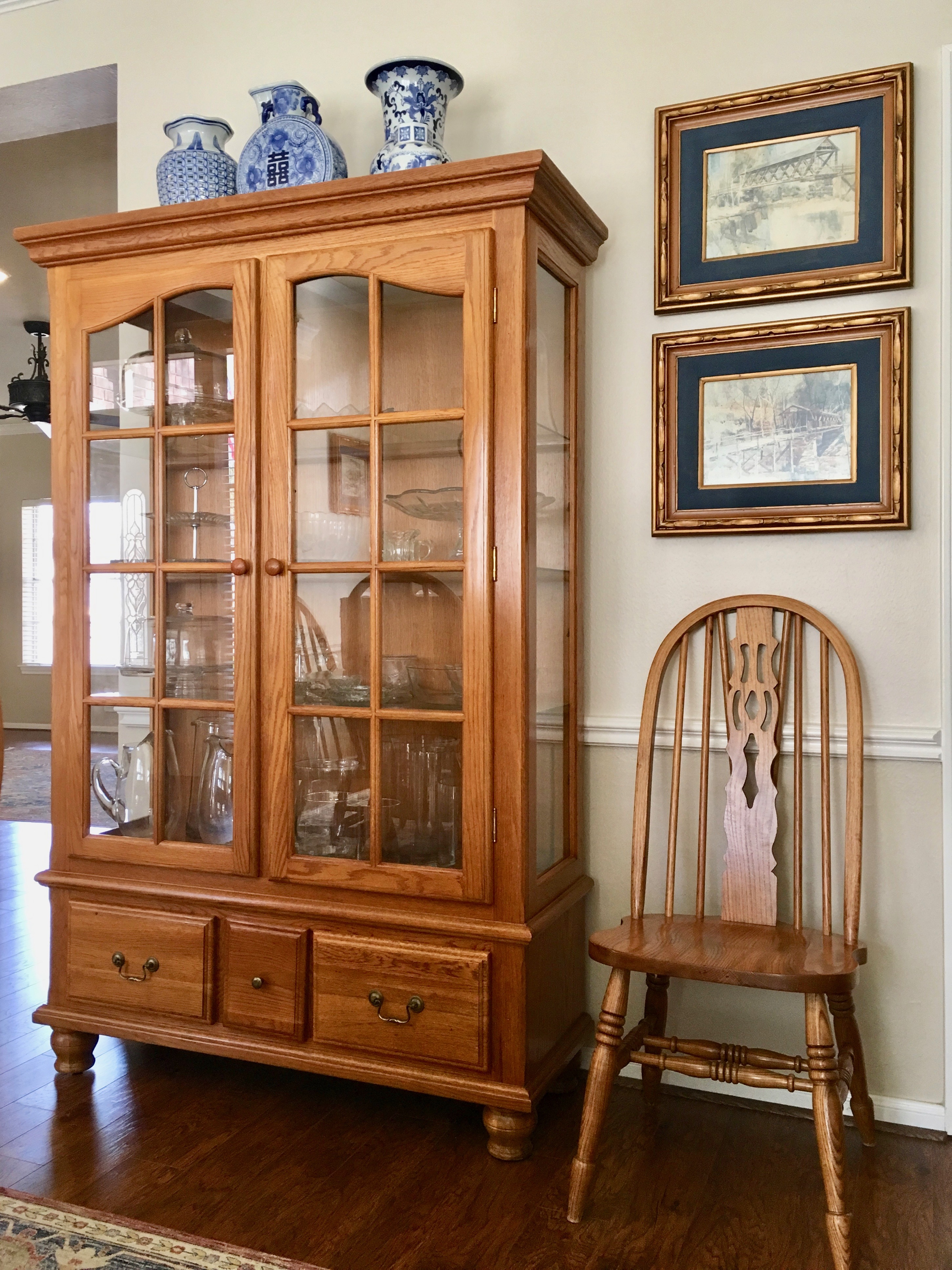 Since moving in, we have changed plugs, switches, and their covers. We have installed light fixtures, hung paintings and pictures, installed and changed cabinet knobs, removed curtain rods, and touched up some of the walls and cabinets (it has been tricky identifying paint colors). My parents brought our belongings that had been stored at their house for the last five years and they worked on some of our projects. We have gotten a lot done so far but there are many projects planned.