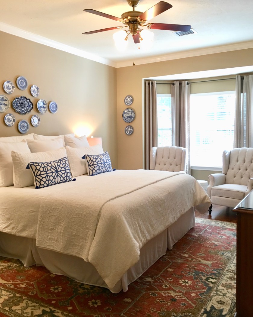 Loom Decor pillows are definitely pricey but as I have mentioned before, I can’t sew. I spent two years searching for a less expensive option but never found any extra long bolsters or lumbar pillows in store or online. The Loom Decor lumbar pillows can be made 12″ x 24″, 14″ x 36″ or 14″ x 48″ and the bolster pillows can be made 8″ x 24″, 9″ x 36″, or 9″ x 48″. This is a king size bed so I chose the 9″ x 48″ but I think two 8″ x 24″ bolsters would have looked good too.