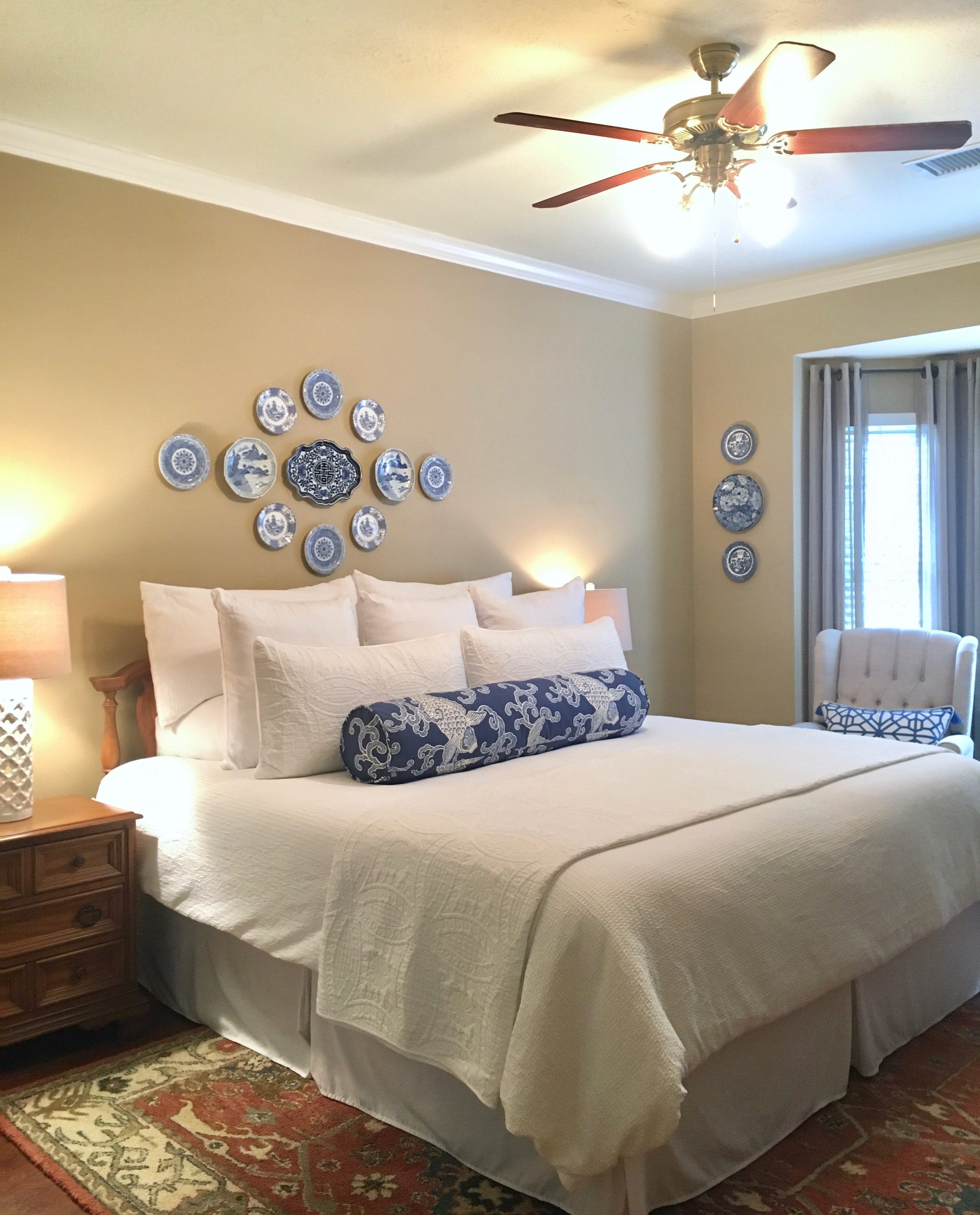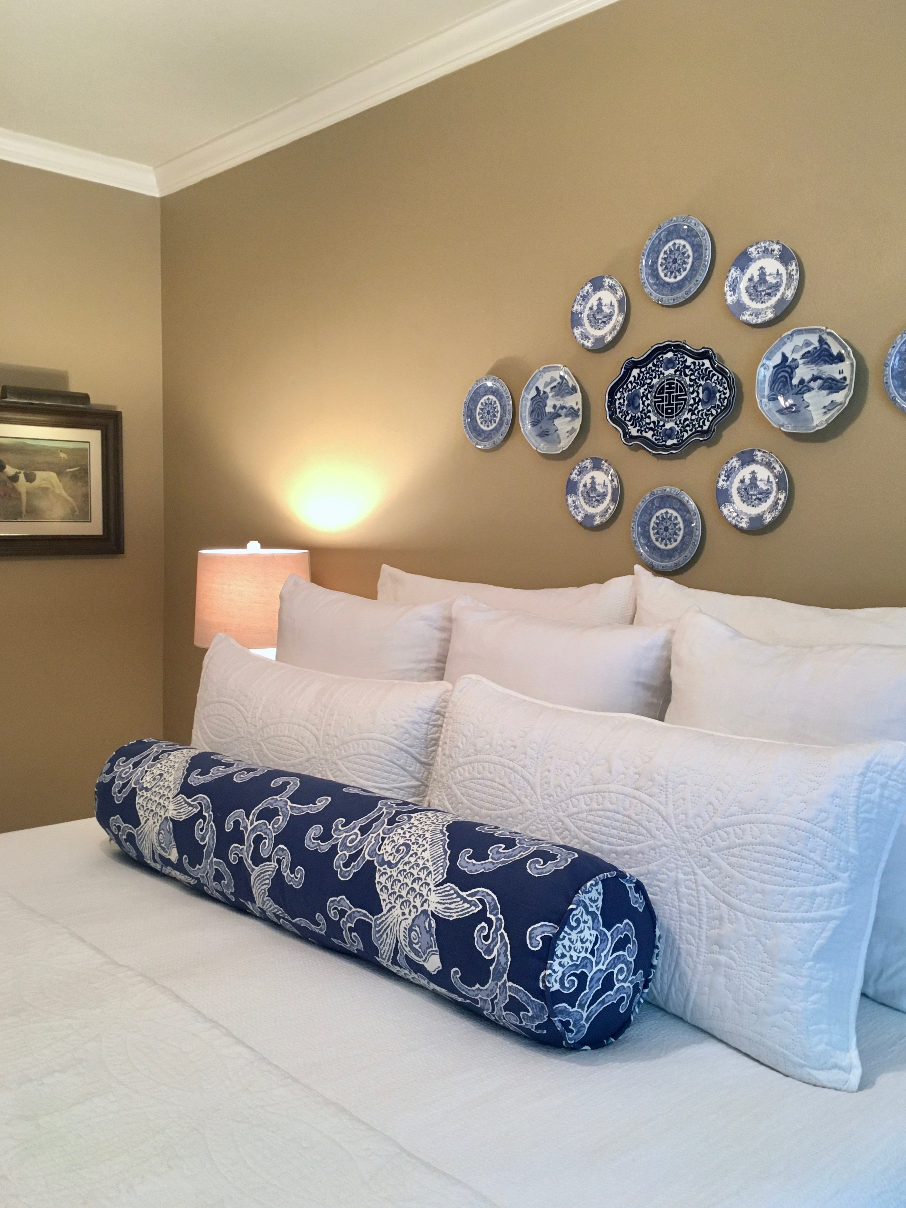 Loom Decor pillows are definitely pricey but as I have mentioned before, I can’t sew. I spent two years searching for a less expensive option but never found any extra long bolsters or lumbar pillows in store or online. The Loom Decor lumbar pillows can be made 12″ x 24″, 14″ x 36″ or 14″ x 48″ and the bolster pillows can be made 8″ x 24″, 9″ x 36″, or 9″ x 48″. This is a king size bed so I chose the 9″ x 48″ but I think two 8″ x 24″ bolsters would have looked good too.