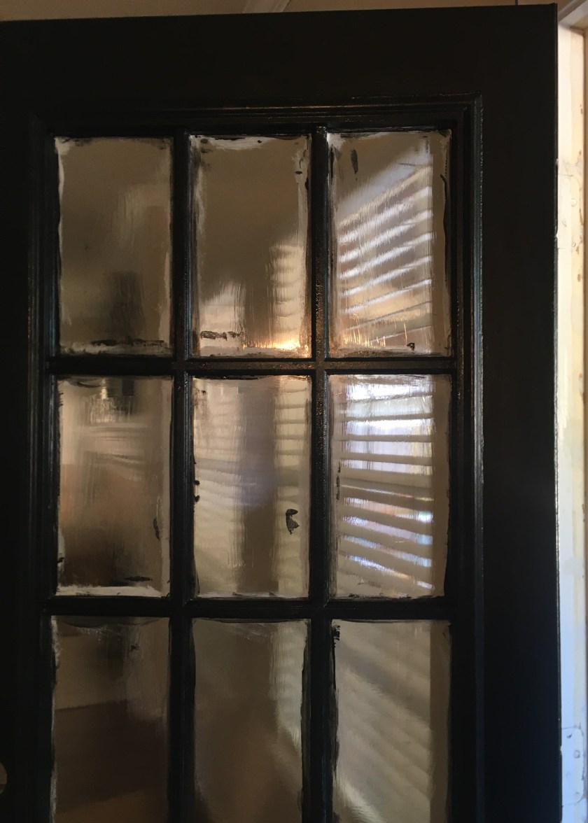 As I sanded and scraped the door, I found traces of three different colors. It’s an old door but like most things, paint makes things look new. I purchased a new door handle and deadbolt but this old door has issues and the new handle did not work well so I just cleaned the old one and re-installed it. There was paint on the brick from a previous paint job and I could not remove it (so just pretend you can’t see it).