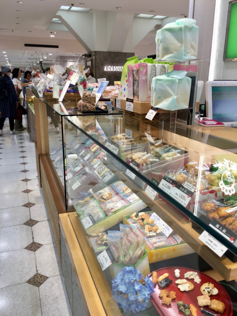I think the Mitsukoshi Department Store in the Ginza District is where we ate milk (vanilla) ice cream. Along with that coffee and ice cream shop, the first floor featured tons of counters selling beautifully packaged Japanese sweets. Visit the basement of Matsuya Ginza Department Store and you will find food. On the bottom two floors of the department store were a fancy food/gift section and a supermarket. Pick up some osenbei (rice crackers), mochi, and some bread from Bread Story. Find directions here.