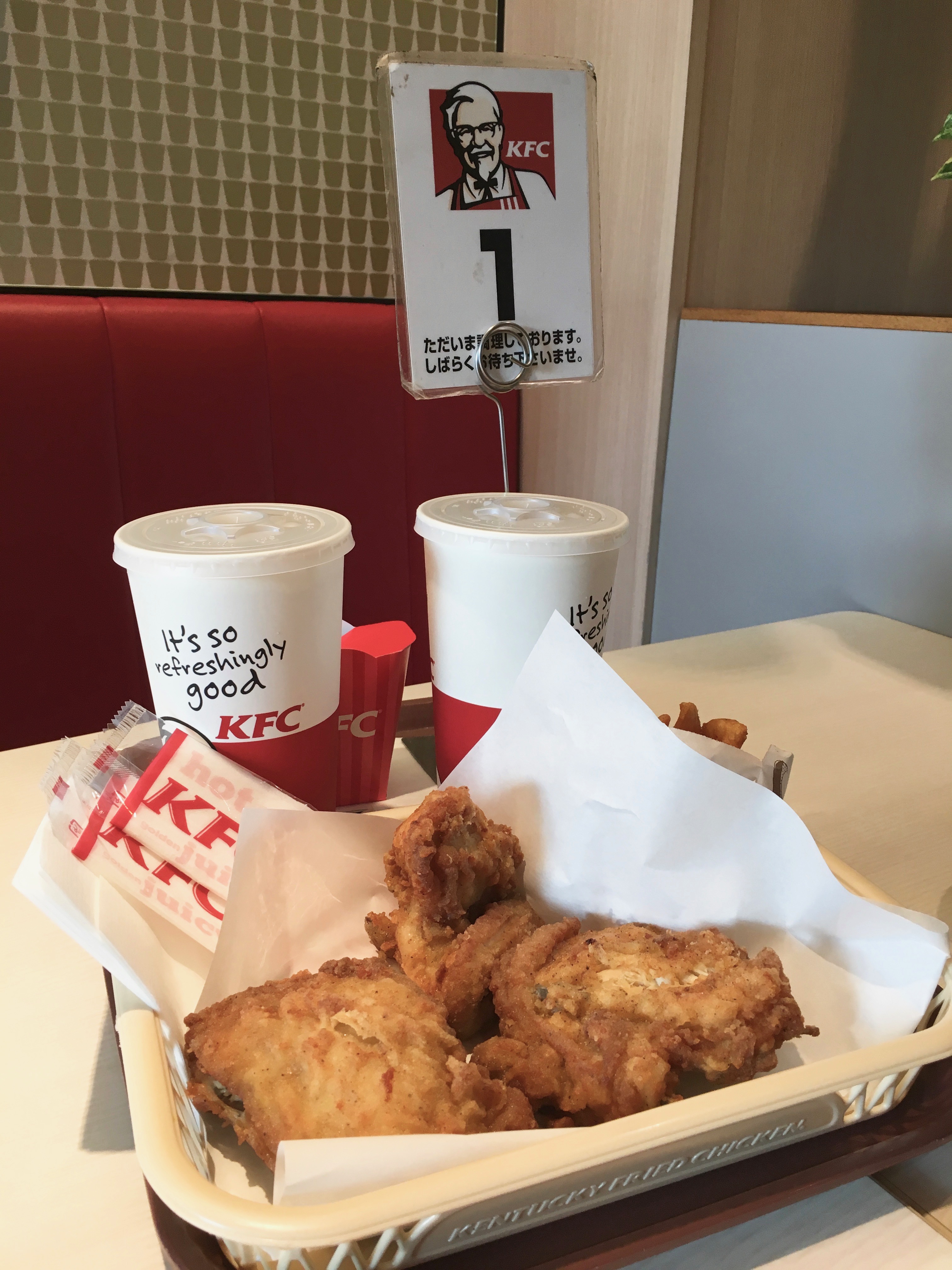 We also ate at the KFC across the street from our hotel a couple of times. It was the best KFC I had ever been too. Clean facility, friendly staff, and delicious food that was not as greasy as the American version. Plus their biscuits were more like donuts with honey on top.
