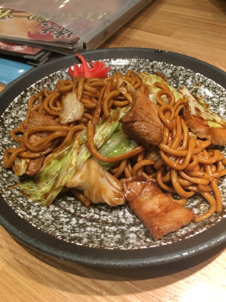 This was our favorite restaurant, Tengu. It was not far down the street from our hotel and we ate there multiple times. They had a “build-your-own-meal” menu so we got to try lots of different things. Plus, it was very inexpensive, the service was good, and the food was great. We tried plum wine, which is delicious and I finally got to have some yakisoba. It is a franchise that has multiple locations in Japan. It would also be a fun place to go for drinks and appetizers.