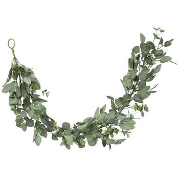 Instead of purchasing a new straw or vine wreath, I dug out an old grapevine wreath I had made years ago and had never used. I used fishing line to secure the pinecones and the garland. The wreath did not look full enough so I went back later and added some additional eucalyptus garland and willow vine garland.