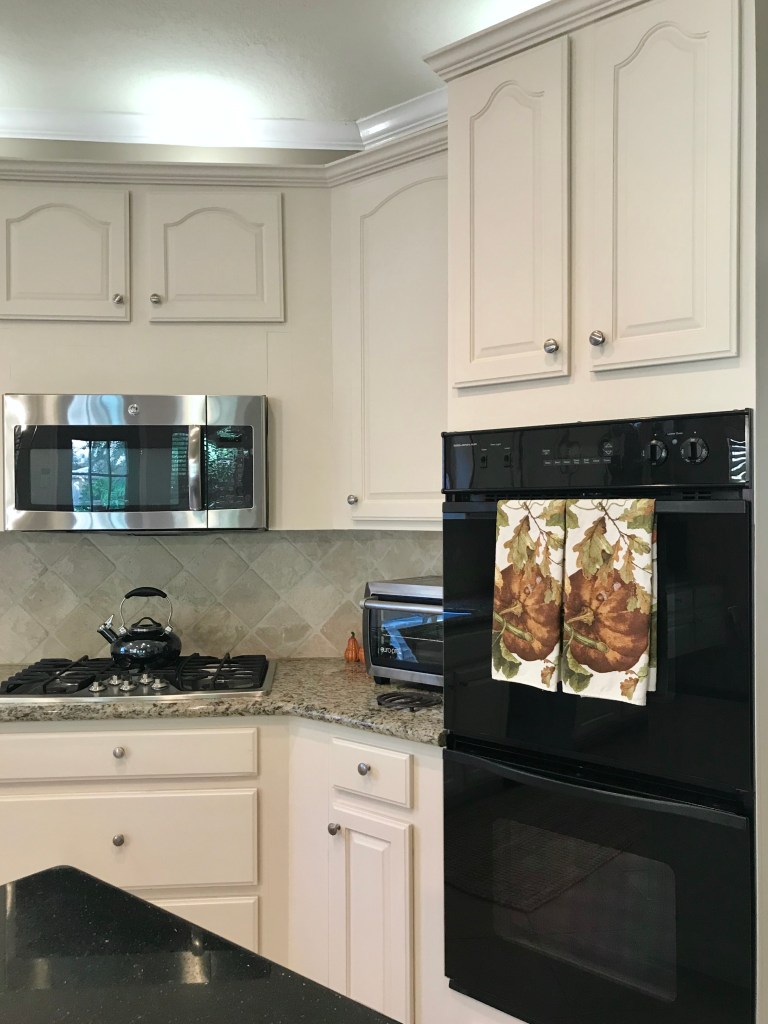 Nothing too exciting. I like keeping all of my counters pretty clear so I do not have to move anything out of the way when I want to cook or I bring out any small appliances from my pantry. Once I purchase a new kitchen table and chairs, I will have more to decorate in the kitchen.