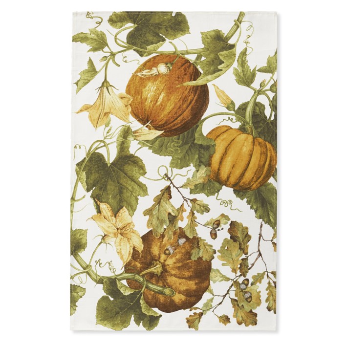 I did a little decorating in the kitchen. While shopping online, I picked up some little salt and pepper shakers and a pumpkin trivet. I found these cute towels from Williams Sonoma.