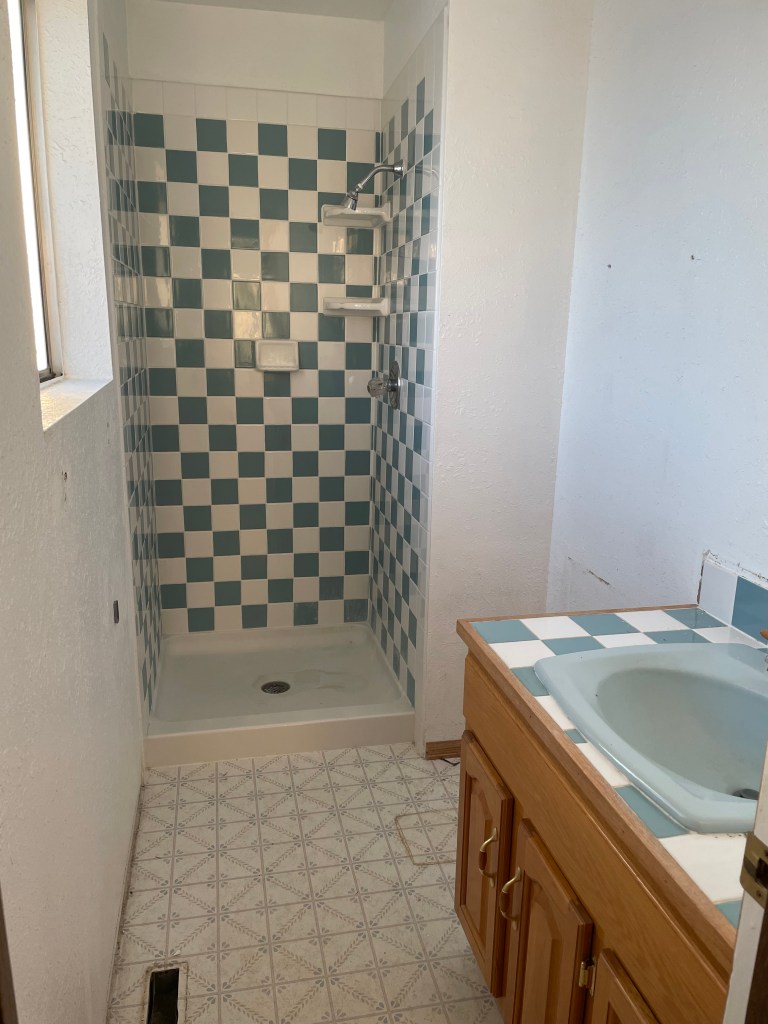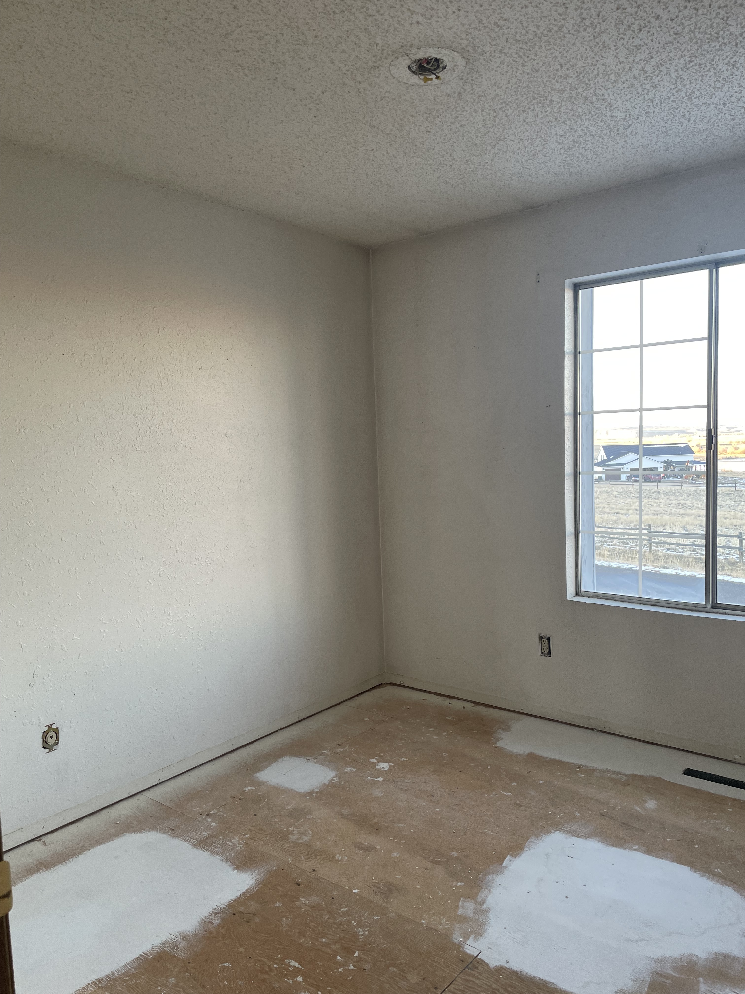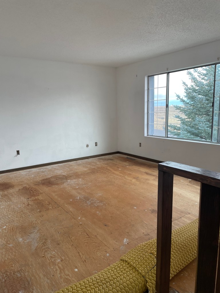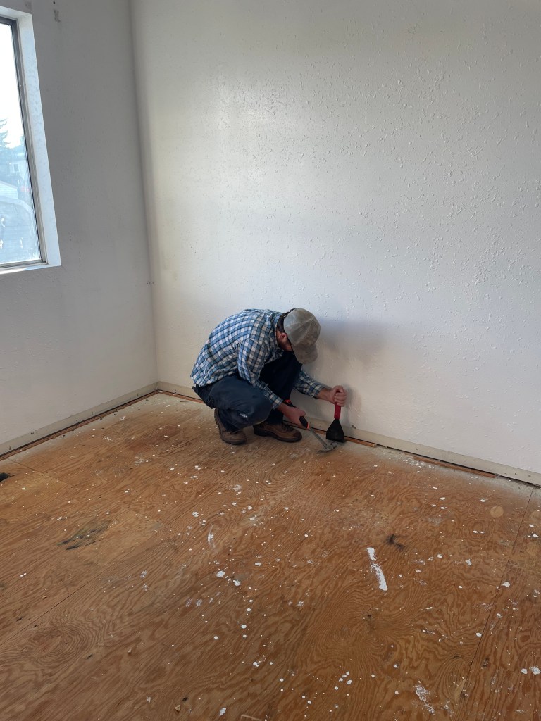 Demolition was a large undertaking. I despise carpet, and this carpet was disgusting and not only nailed but stapled to the floor. We found cans in the wall, change under the flooring, and mold. The linoleum floor left lots of glue to scrape.