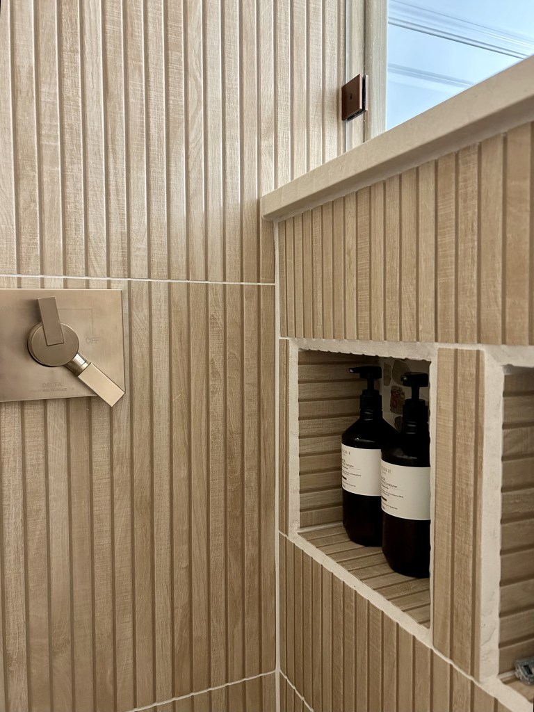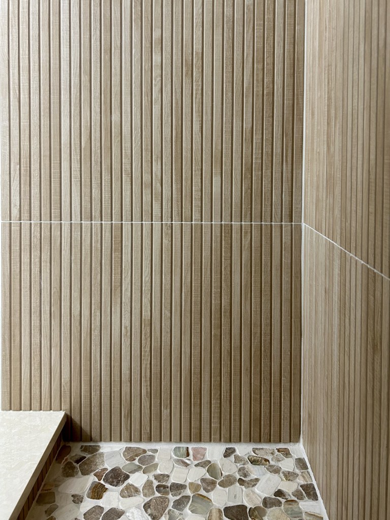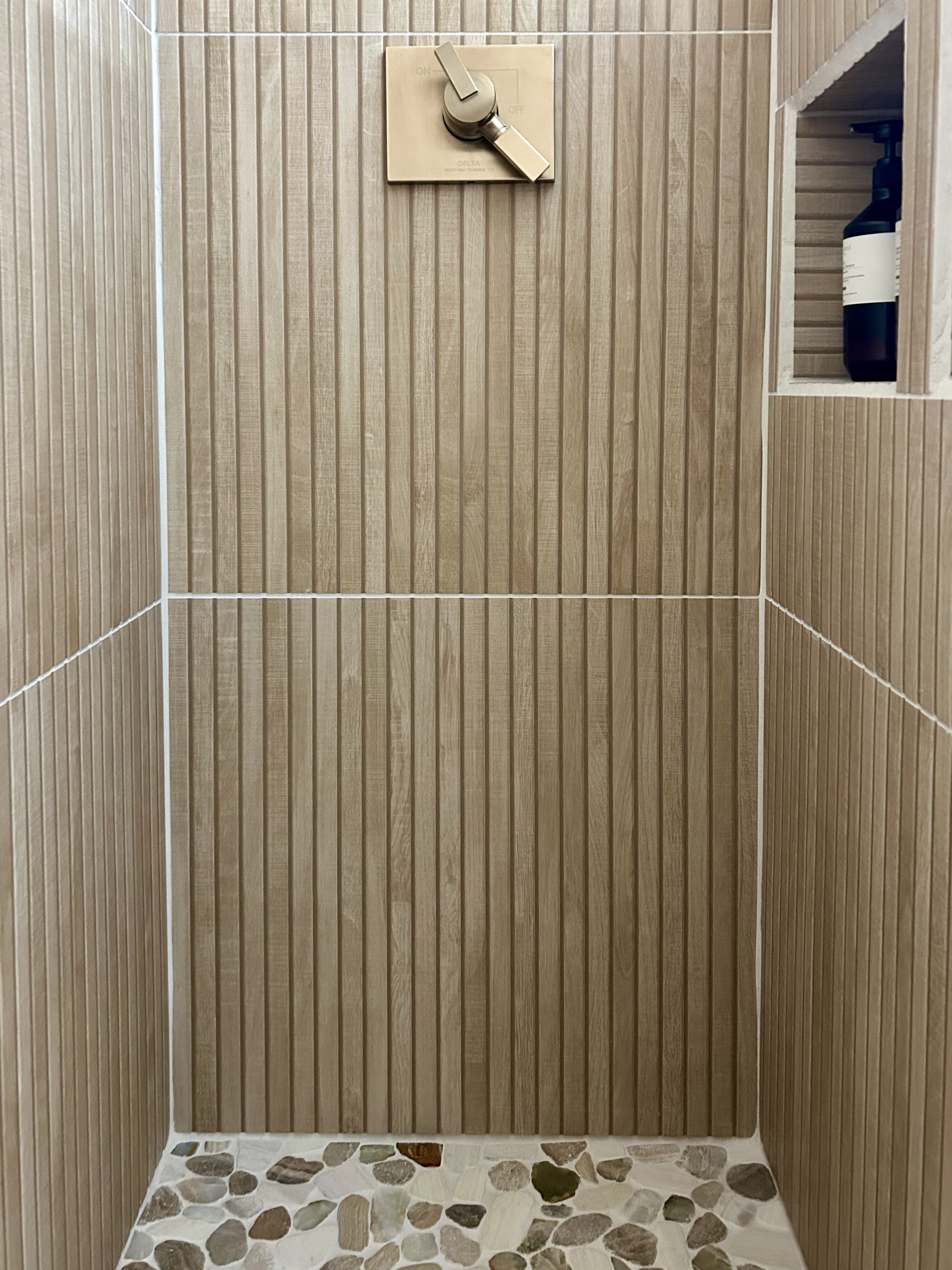 This tile was heavy, especially with mortar. They were 24″x48″ and though I assisted, most of the heavy lifting was done by Levi and Anthony. They continuously expressed their frustration with the tile. But it turned out so good. I love the way it looks.