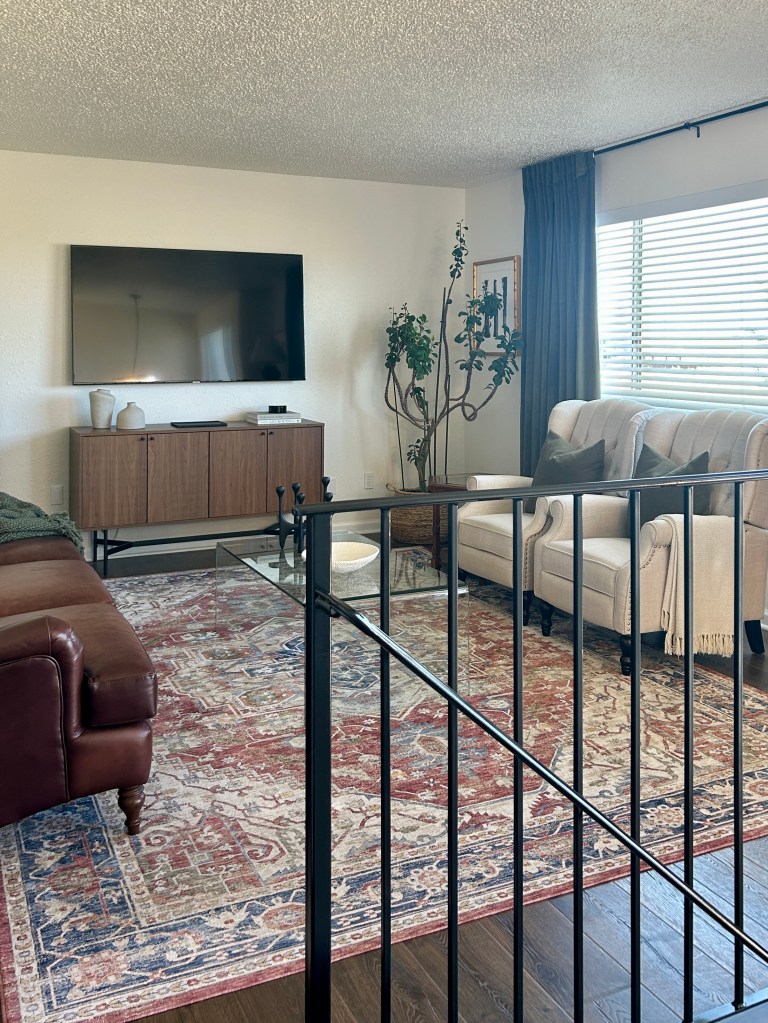 My dad and brother made us a new stair railing. In addition to safety (obviously), it definitely made the room look stylish.