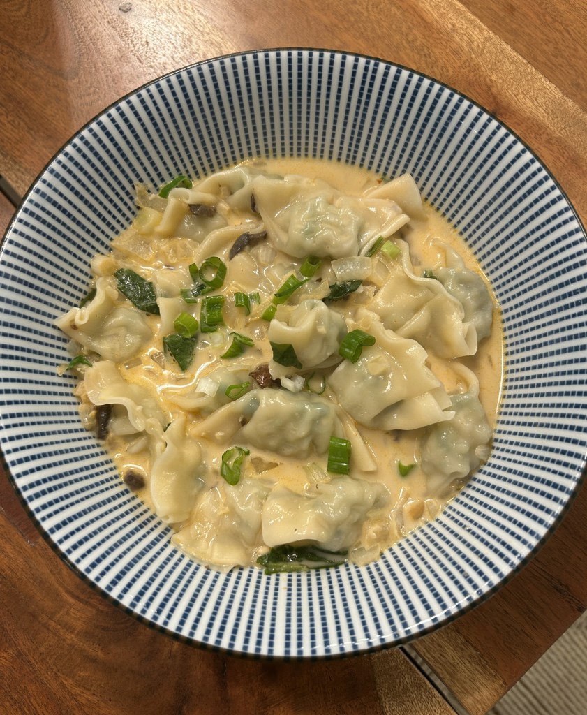 This is a combination of tons of the viral Thai Red Curry Dumplings. I wanted a soup rather than just dumplings and I found tons of different versions.