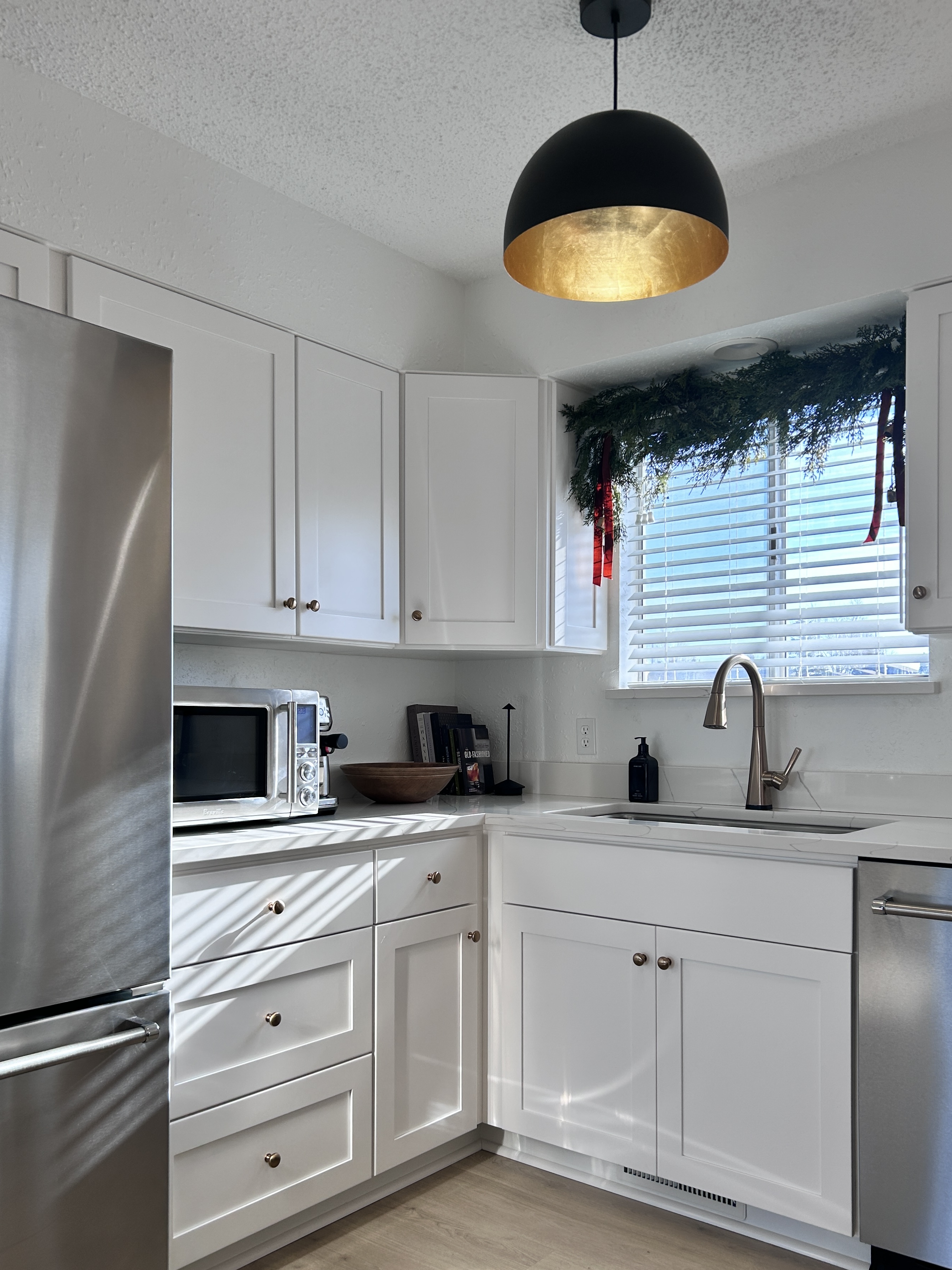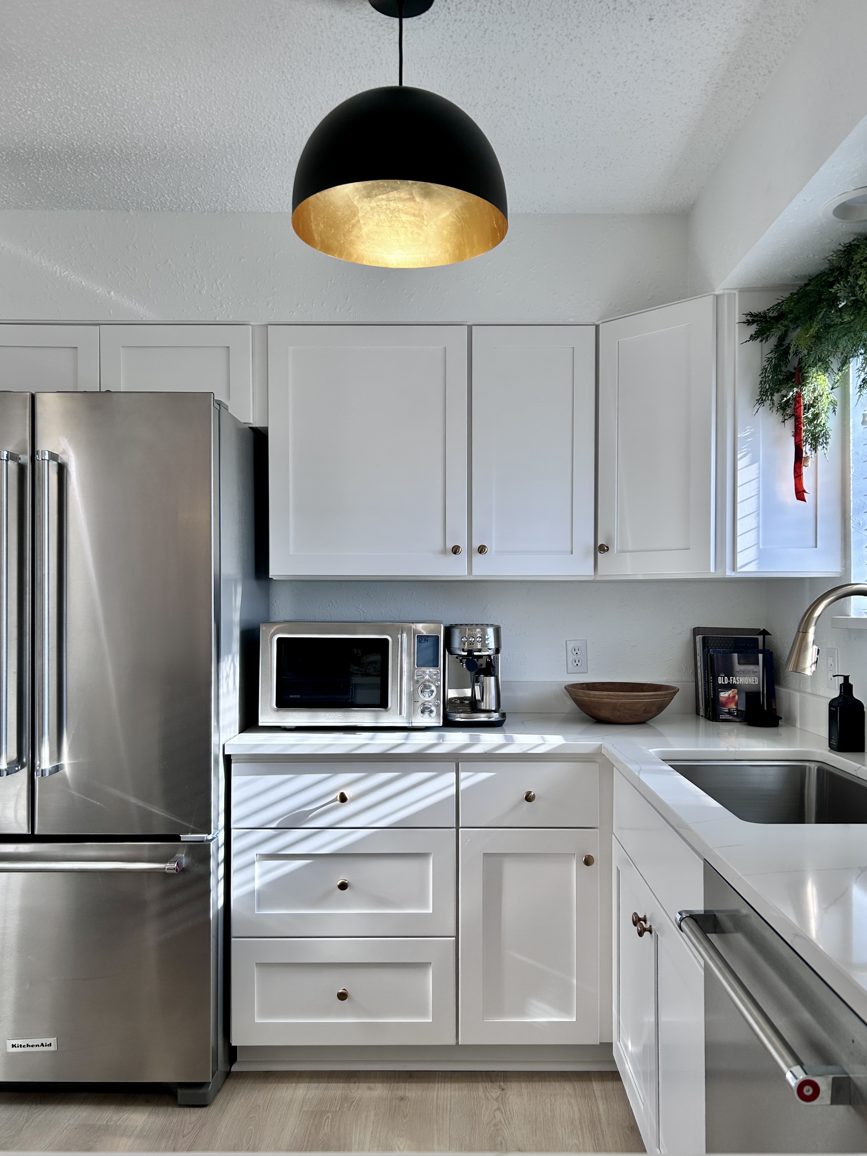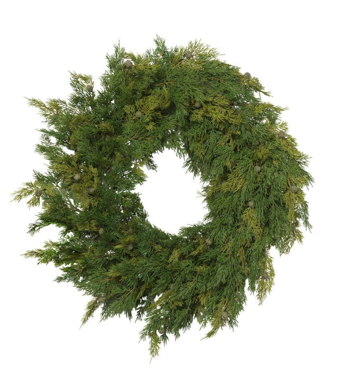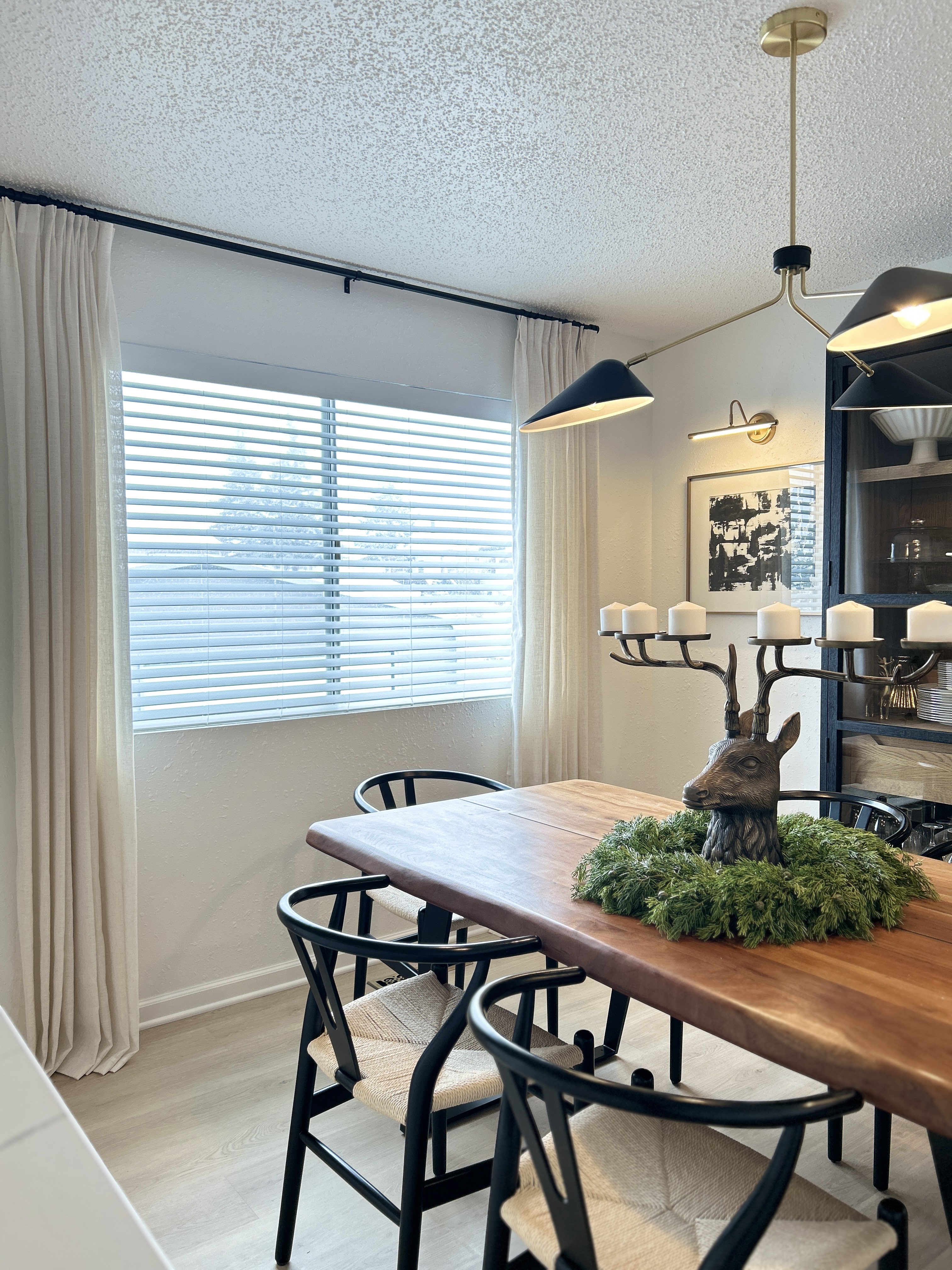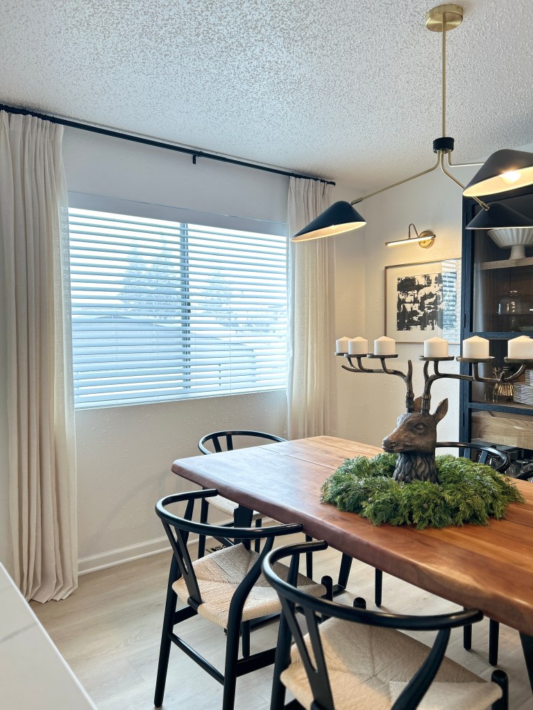 But this year, I had a better strand of garland to use and the process was a lot easier. I had a few greenery stems so I filled in any holes. It’s simple and doesn’t block the natural light.