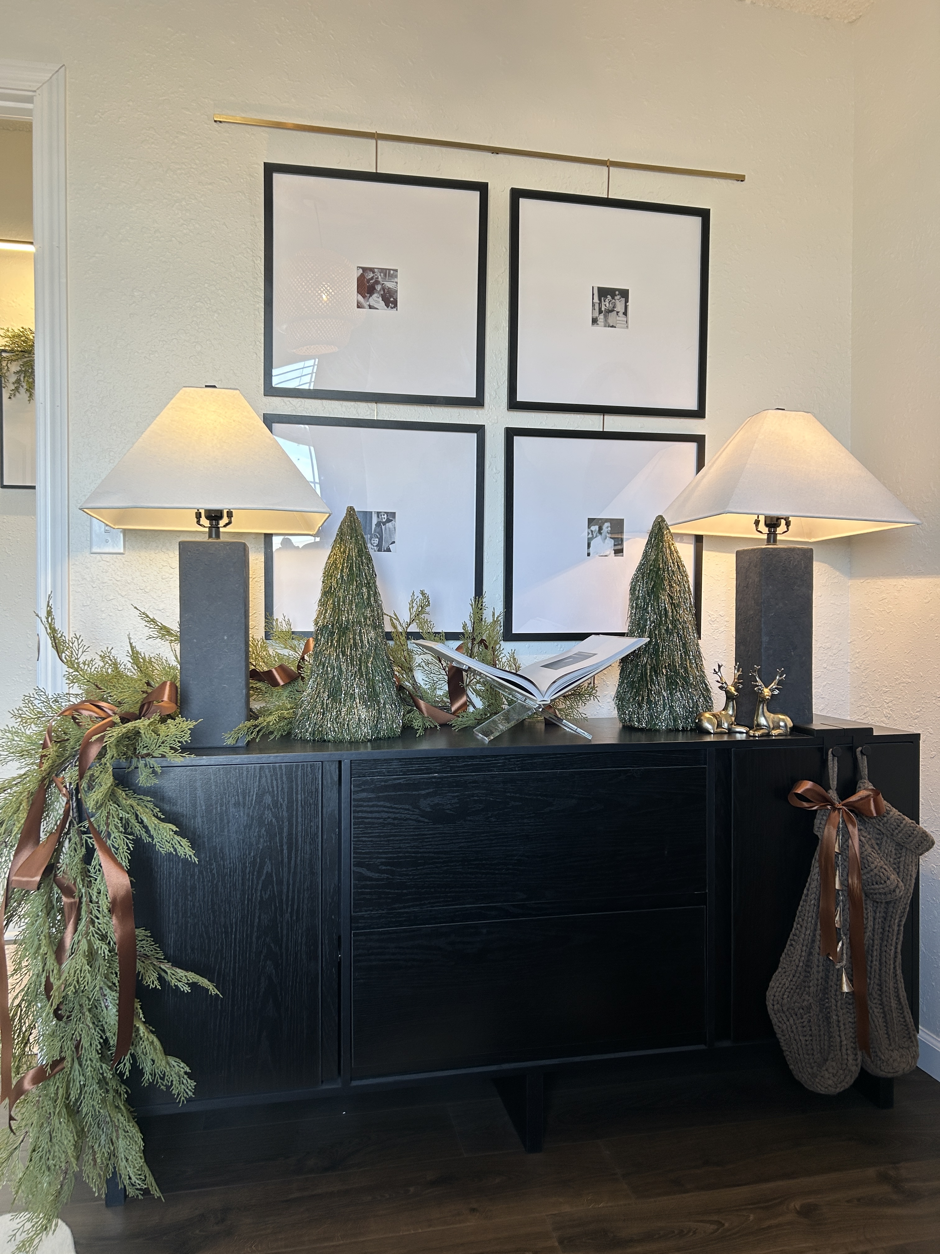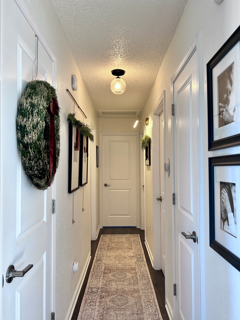 The hallway turned out pretty this year. I really like this greenery.